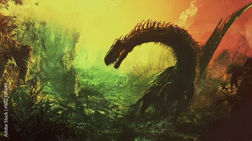 Mythical Dinosaur in a Tropical Jungle - Fantasy Art