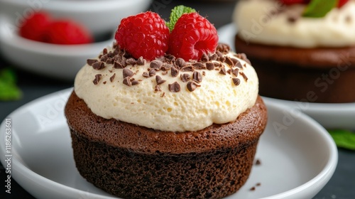 National Chocolate Souffle Day Chocolate cupcake with cream topping and raspberries