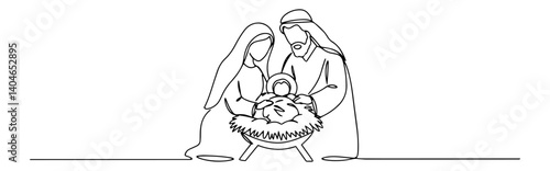 nativity scene with mary joseph and baby jesus elegant one-line sketch with a fluid design
