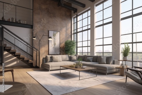 Natural Apartment Loft Luxury Interior with High Ceilings and Exposed Wood Beams Made with Generative AI