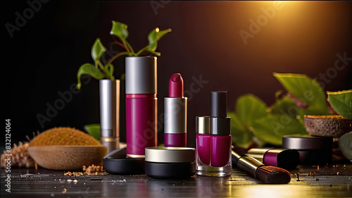 natural cosmetics on the table, background photo for cosmetics advertising,