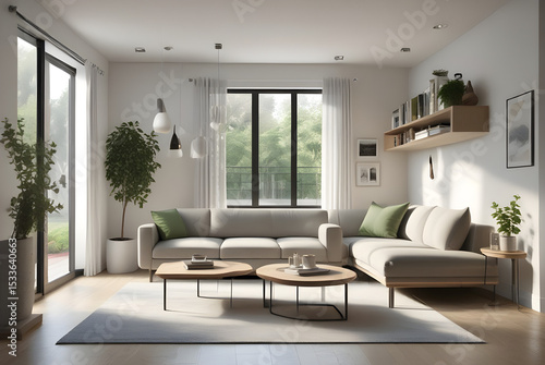Natural Light Living Room with Scandinavian Design and Organic Green Touches