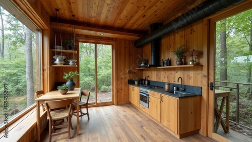 Natural style forest kitchen scene