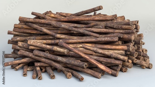 Natural Twigs and Branches Piled Together on a Neutral Background