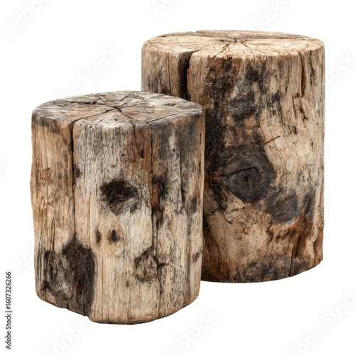 Natural wood stumps as rustic home warm environment view isolated on transparent background