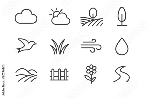 Nature Icons Set. Nature Growth. Solid icon set of Nature Growth: tree, sapling, roots, leaves, sun, water droplet, soil mound, watering can, shovel, plant