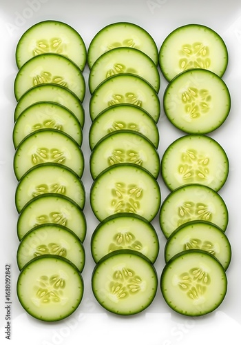Neatly arranged cucumber slices displaying freshness and vibrant green hues creating a visually appealing composition