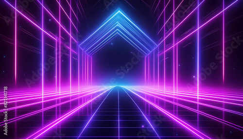 Neon Background; abstract geometric pattern; blue and purple colors