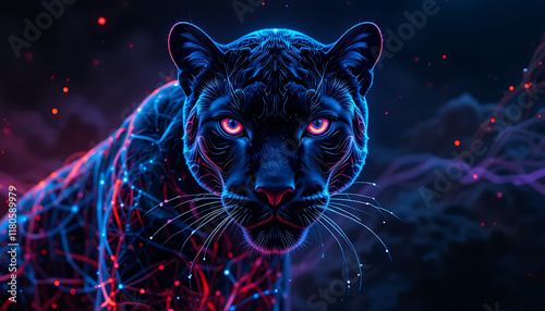 Neon black panther with glowing lines generative art
