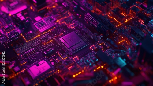 Neon Circuit Board: A Glowing Digital Landscape