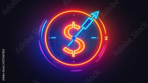 neon clock icon with a money symbol and double arrows, showcasing the relationship between managing time efficiently and achieving financial success