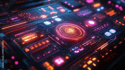 Neon Cyberpunk Interface: Futuristic Digital Technology Display