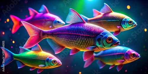 Neon Fish in a Dark Abyss, digital art, colorful fish, underwater scene, aquatic life, fish, neon