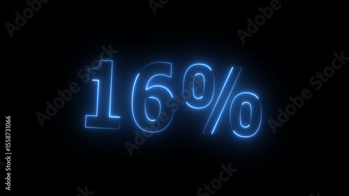 Neon glowing 16 percent icon illustration. on black background. Abstract 16% percent text neon illustration. and creating a stunning 4k illustration.