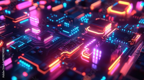 Neon Glowing Circuit Board
