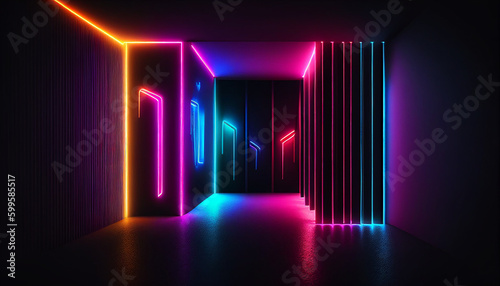 Neon light aesthetic dark wallpaper backdrop, Generative AI