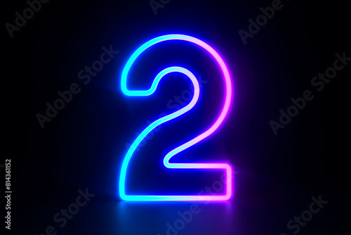 Neon number two on dark background. 3D illustration