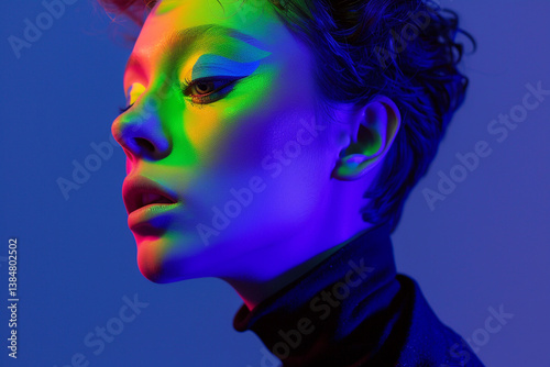 Neon Rainbow Portrait: A Vibrant Study in Light and Shadow