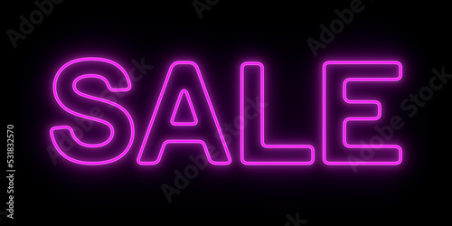 Neon red sale on black background. 3d illustration