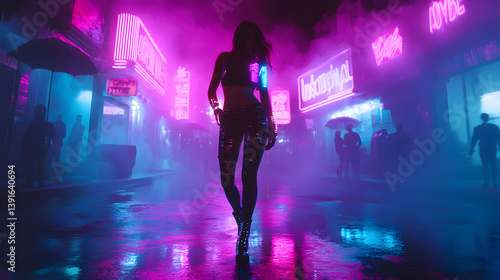 Neon Reverie: Cyberpunk Visions in a Rain-Drenched Urban Nightscape Fueled by Reflective Radiance and Futuristic Fashion Statements