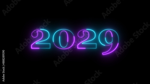Neon text calendar 2029 Sal illustration, glowing neon icon cyan and purple colors.