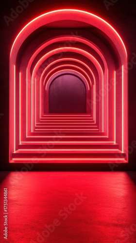 Neon-lit archways create a captivating hallway in a modern architectural setting