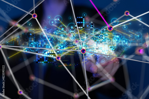 Neural network 3D illustration. Big data and cybersecurity - 3d