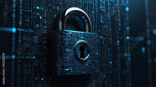 New Free Photo Set Part Cyber security concept with padlock on binary code background 3D rendering ai