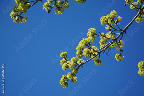 new growing green bud on tree branch