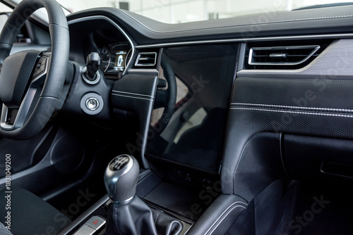 New modern car interior inside in modern showroom