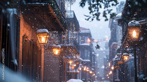 New Orleans French Quarter Winter Setting Christmas Time with Fairy Tale Snow