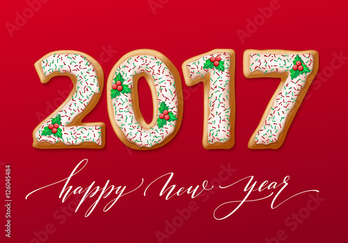 New Year 2017 in shape of gingerbread number as cookies. Vector illustration