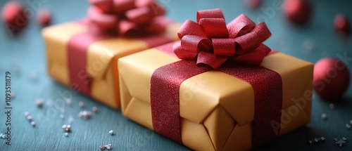 New Year gifts in boxes on snow against the backdrop of the New Year