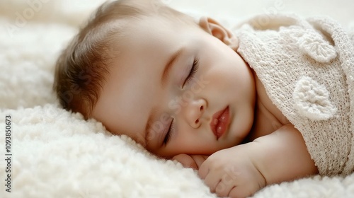 Newborn baby peacefully sleeping in a soft wrap on a white background - capturing the serenity of infancy