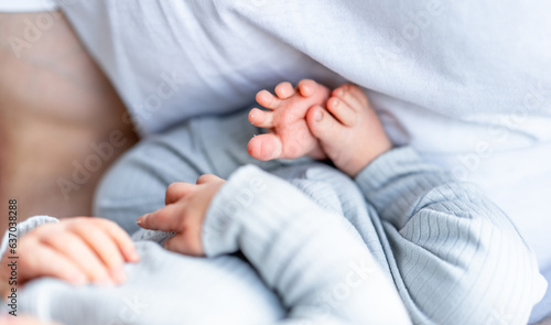Newborn child hands and feet. Small baby fingers.