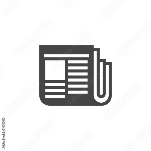 Newspaper icon in glyph style. Web graphics print label. Journal black flat logo. Daily press, journalism, tabloids, media concept. Vector illustration isolated on white