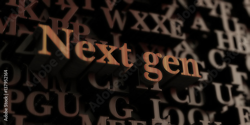 next gen - Wooden 3D rendered letters/message. Can be used for an online banner ad or a print postcard.