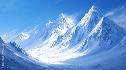 nice and fresh morning clear view of a natural snow covered mountains, snow covered surface with beautiful mountains, Winter season morning snow covered mountains under a clear sky.
