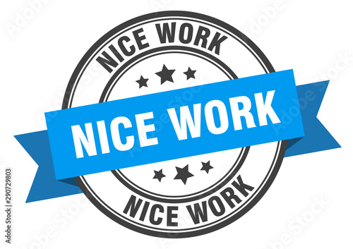 nice work label. nice work blue band sign. nice work