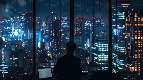 Night City Skyline Viewed from a High Rise