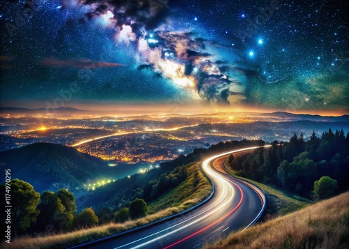 Night Journey: A Thousand Miles of Starlit Path - Stock Photo