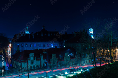 Night Lviv old city architecture in the Christmas