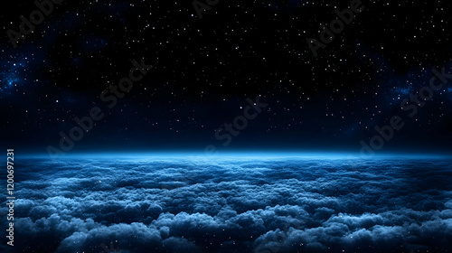 Night Sky Meets Clouds: A Majestic View from Above with Twinkling Stars Illuminating the Fluffy Cloudscape.