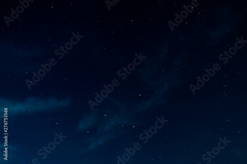 night starry sky with the constellation Cassiopeia, and a scattering of stars.