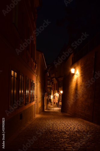 Night view in the historical town of Bamberg, Bavaria, region Upper Franconia, Germany