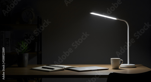 Nighttime Workspace Setup With Led Desk Lamp and Coffee Cup Lifestyle
