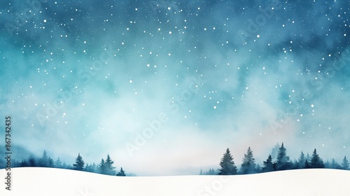 Northern lights, snow-covered landscape, starry sky, Watercolor style