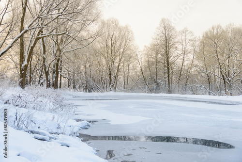 not frozen pond in winter