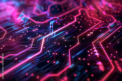 nspired by electronic circuits, with lines, dots, and patterns imitating electrical pathways and microchips, creating a modern and high-tech visual effect