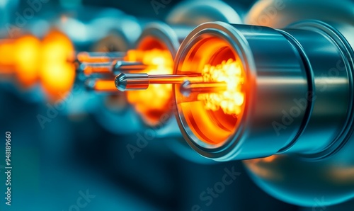 nuclear fission reactor core - a close up view of uranium fuel rods generating heat and energy in a nuclear power plant.